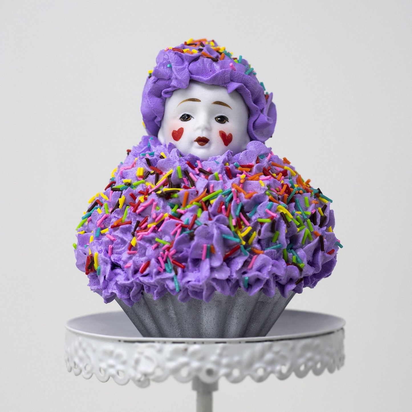 These adorable cupcake cuties are handmade and one-of-a-kind! You will be tempted to take a bite into them because they look so good! Babycakes can be used as props for creative photography projects, they can be given as unique gifts or they can be displayed as kitschy, eye catching decor. These lovely little doll cakes were created using handmade polymer clay sprinkles, painted mini tart cups, artificial cupcake base, non-edible buttercream icing and vintage doll parts. The doll parts were obtained via my journeys to various estates around the Pittsburgh area. These doll parts are truly vintage thus each cake has a unique character and history. These little sweethearts would be a great surprise for a friend who enjoys vintage aesthetics. You could also place them on a kitchen windowsill, on a shelf by a favored plant or underneath a glass cloche. These charming vintage-inspired cupcakes are sure to delight and intrigue all who happen to see them.