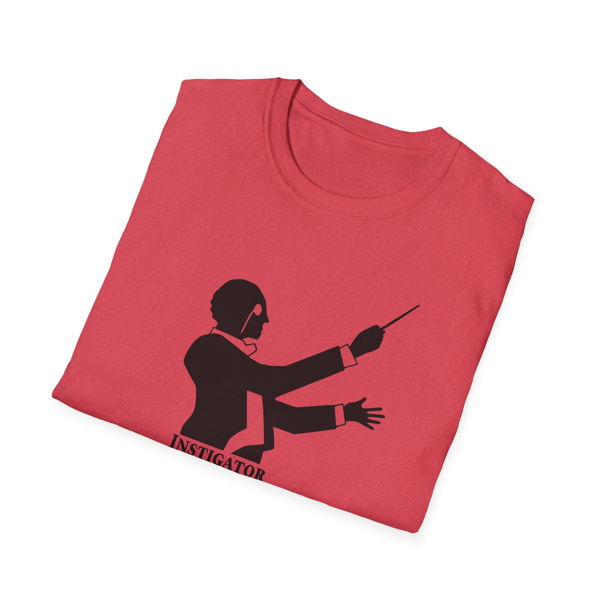 Ready to stir up some symphonic chaos? Our “Instigator” T-shirt is for the maestro of mayhem — the stylish troublemaker who conducts more drama than an orchestra pit during a power outage. Featuring a bold graphic of a conductor mid-cue and the word INSTIGATOR blaring beneath, this shirt is perfect for those who enjoy poking the bear, challenging the status quo, or just being the loudest voice in a room full of polite nodding. Whether you’re the group chat agitator, the family dinner devil’s advocate, or the coworker who says what everyone’s thinking — this tee was composed just for you. Soft, unisex fit with enough attitude to ruffle feathers at any tempo. Strike up your own movement — chaos has never looked so good.