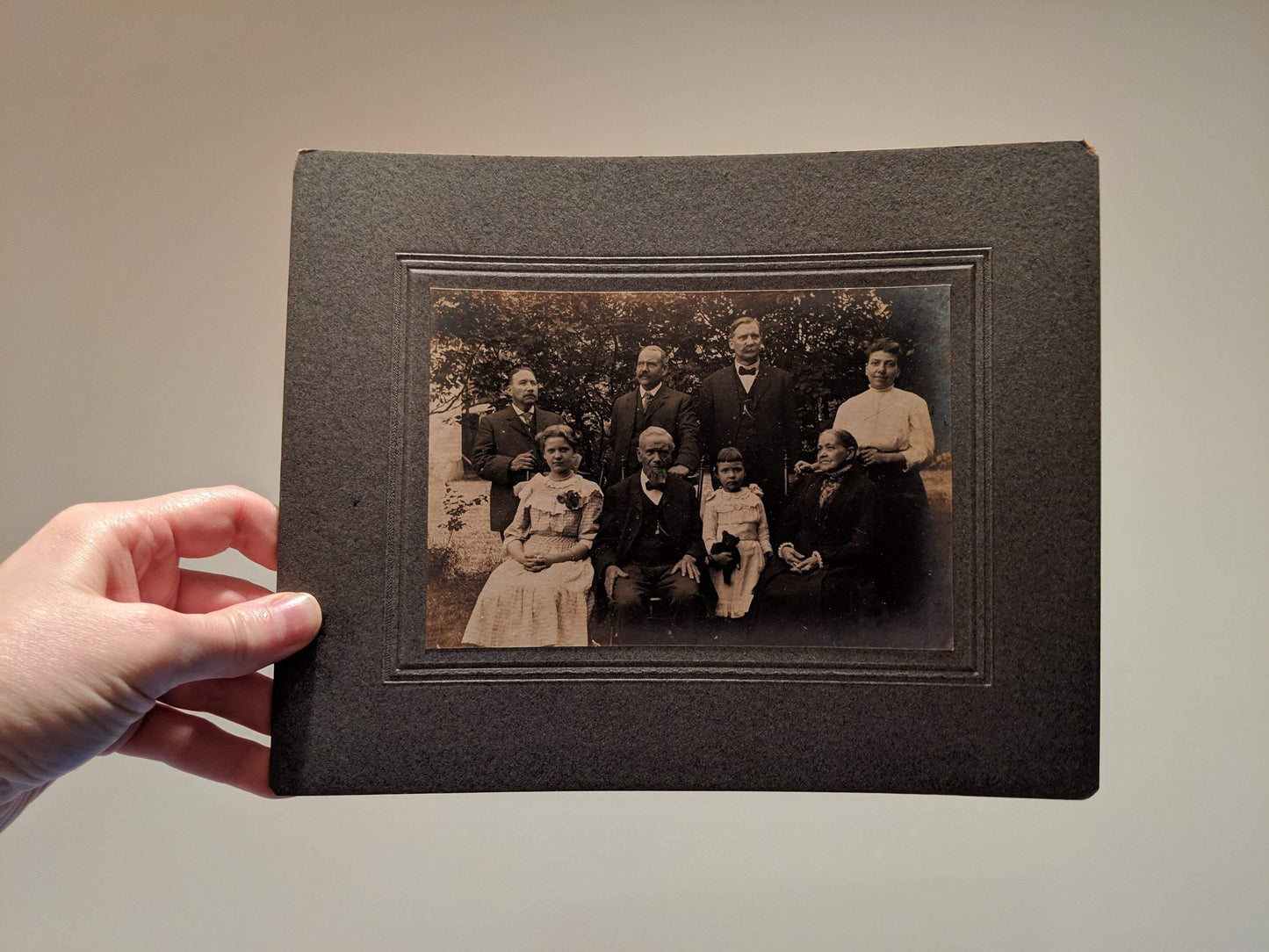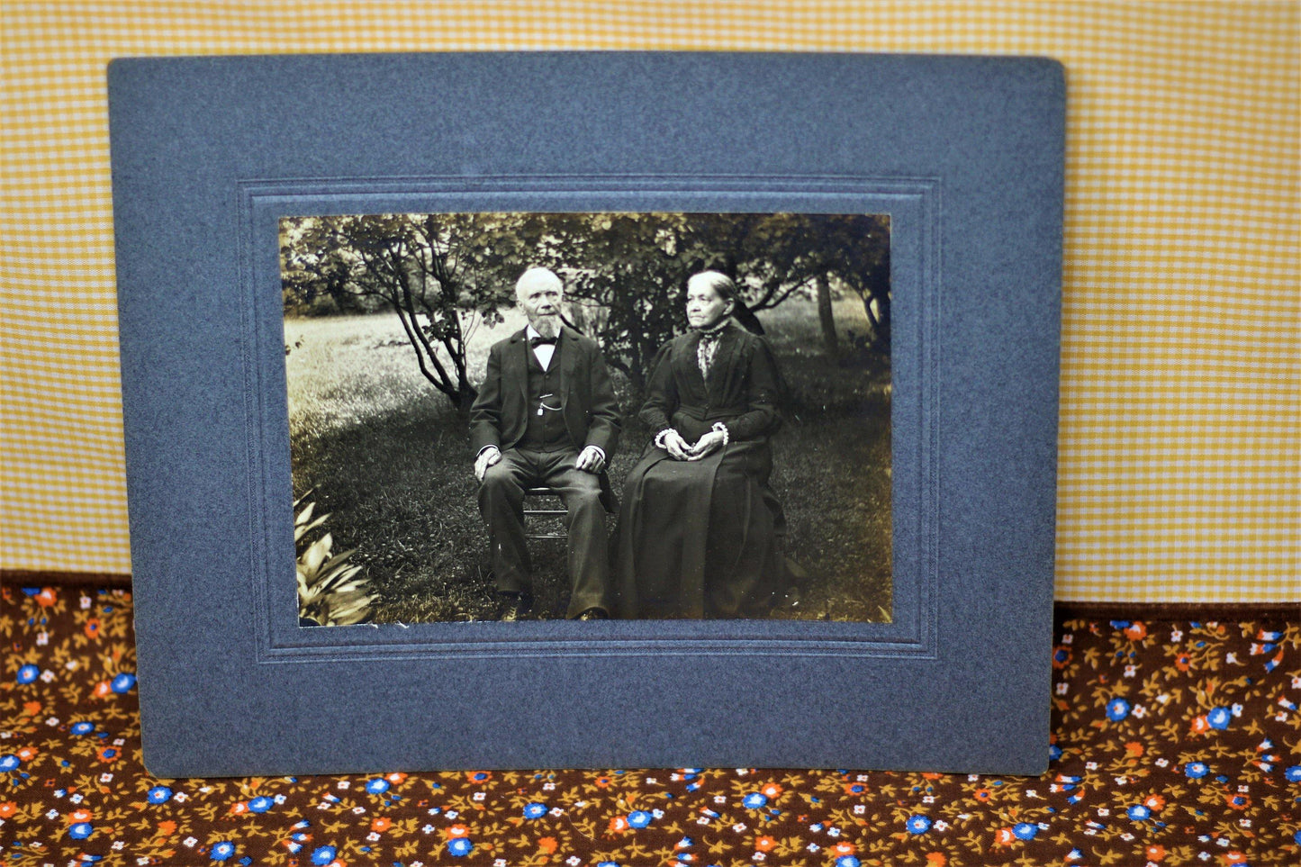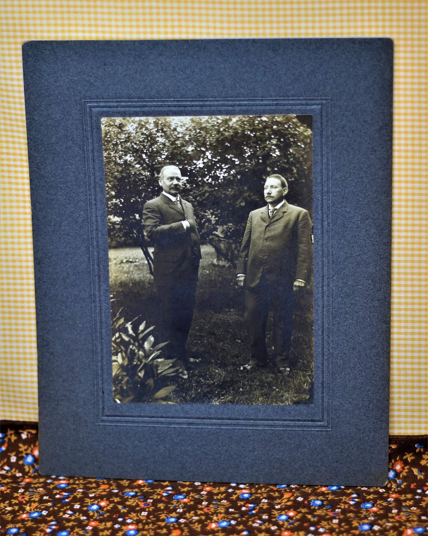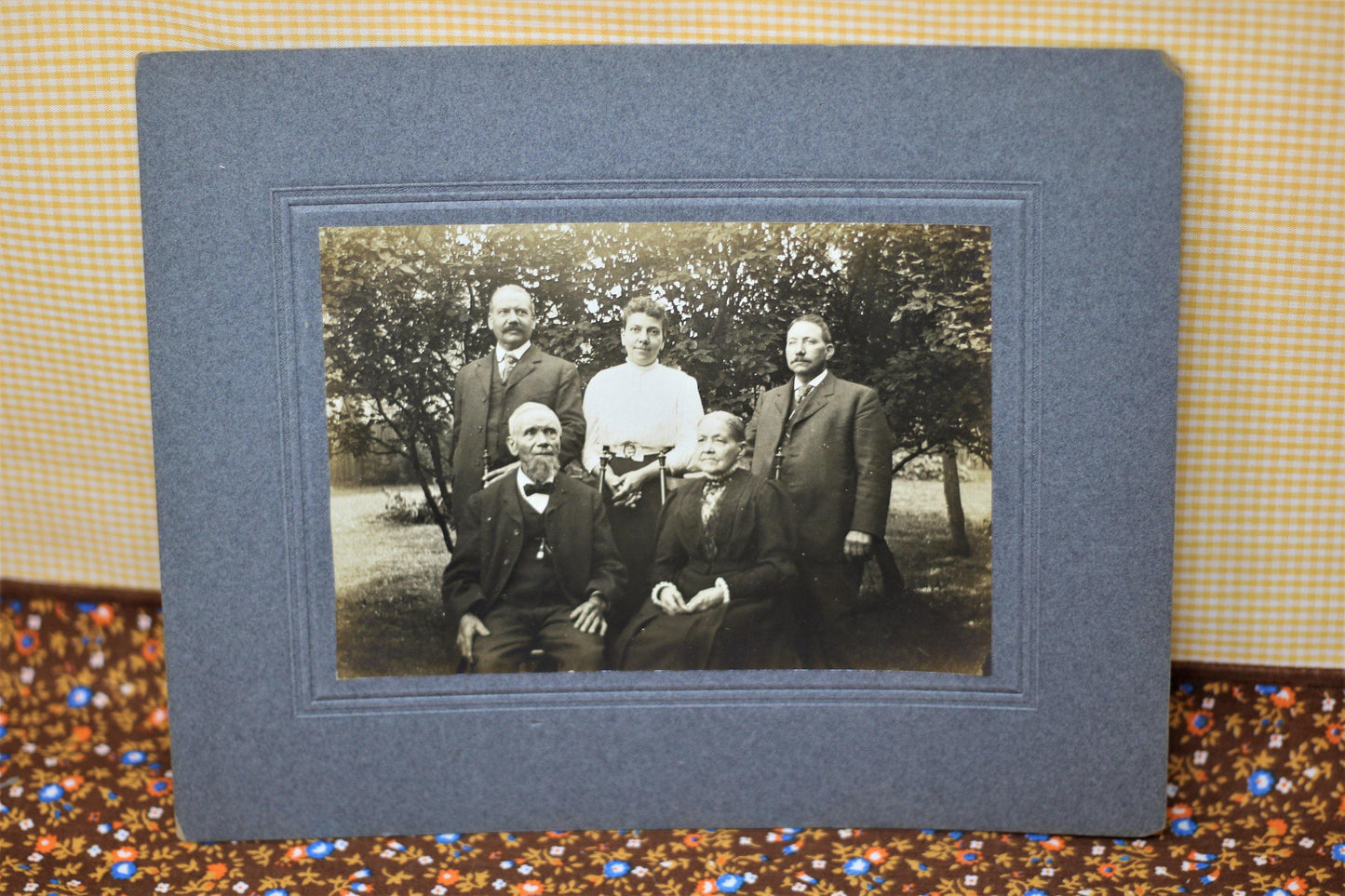 Each photograph features varying members of what appears to be a family; two women, four men, a teen aged girl and a younger girl with her beloved teddy bear. These individuals appear to be posing in a garden/yard outside of a home. The card stock matting is a blueish gray. The photographs are sepia. These photos would look spectacular in some stylized Victorian frames. They would certainly be adored by anyone who loves the Victorian era, haunting photographs, interesting ephemera and/or unique home decor. Please see the pictures provided and let me know if you have any questions!