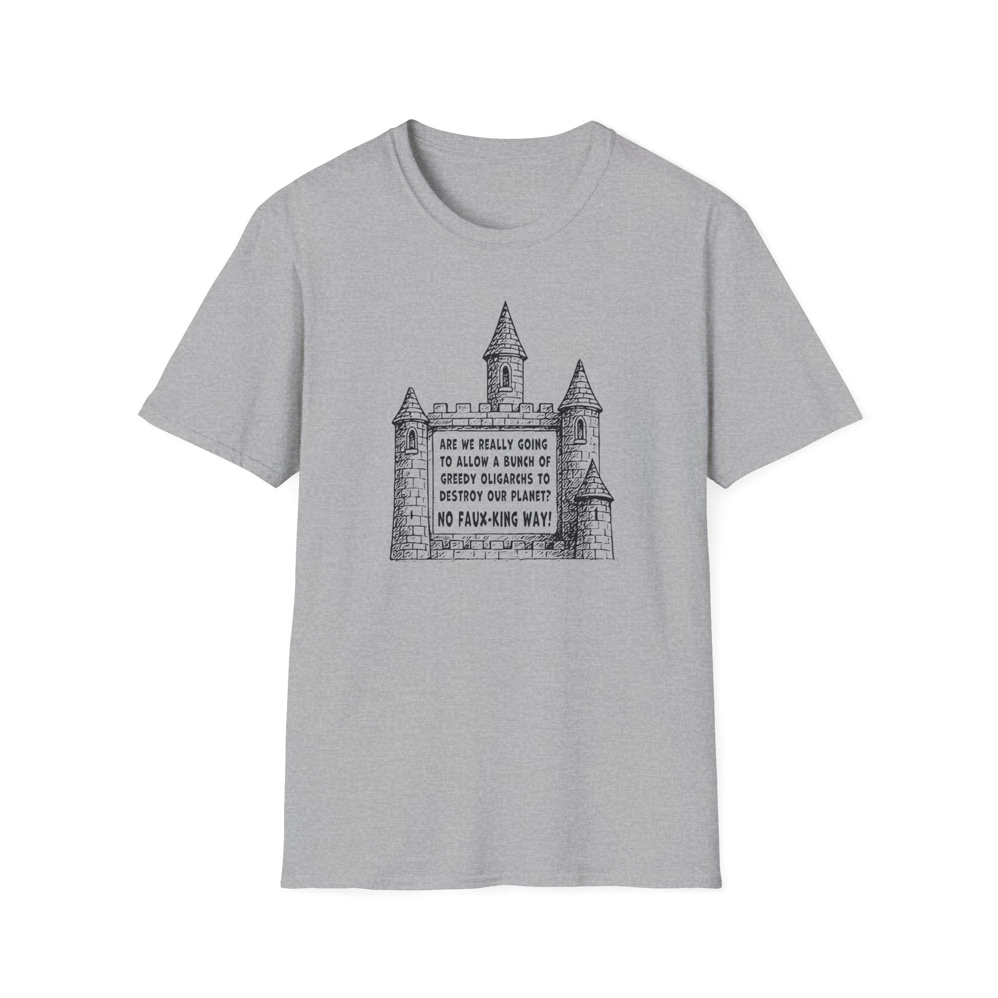 #nofauxkingway #climatecrisisfashion #antioligarchyshirt #politicaltshirt #resistancewear #ecoactivism #statementshirt #capitalismkills #climatejustice #printifyshirts #fauxkingresistance #unisexprotesttee #castlegraphictee #satirefashion #greennewdealnow #fossilfuelfail #resistfastfashion #antibillionaireshirt #systemicchange #justicefashion #climateactivistwear #fauxkingplanet #burnthecastle #ethicalfashion #wearableresistance #shopifyactivist #climatechangegraphictee #printifyprotest #oligarchyresistance #gildanprotesttee