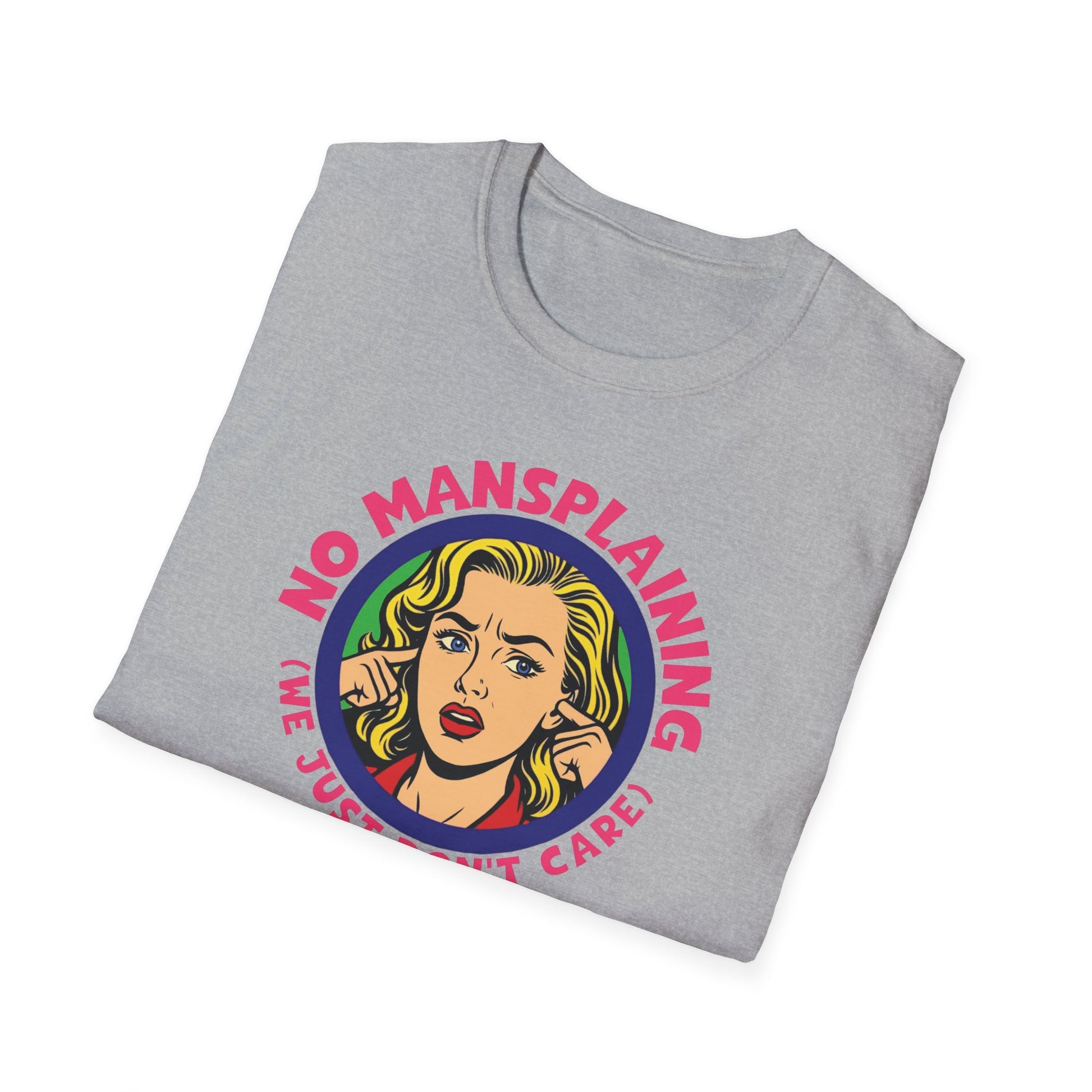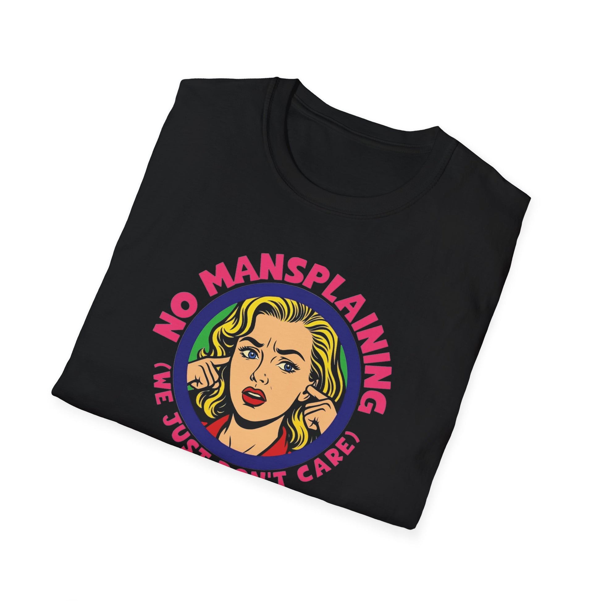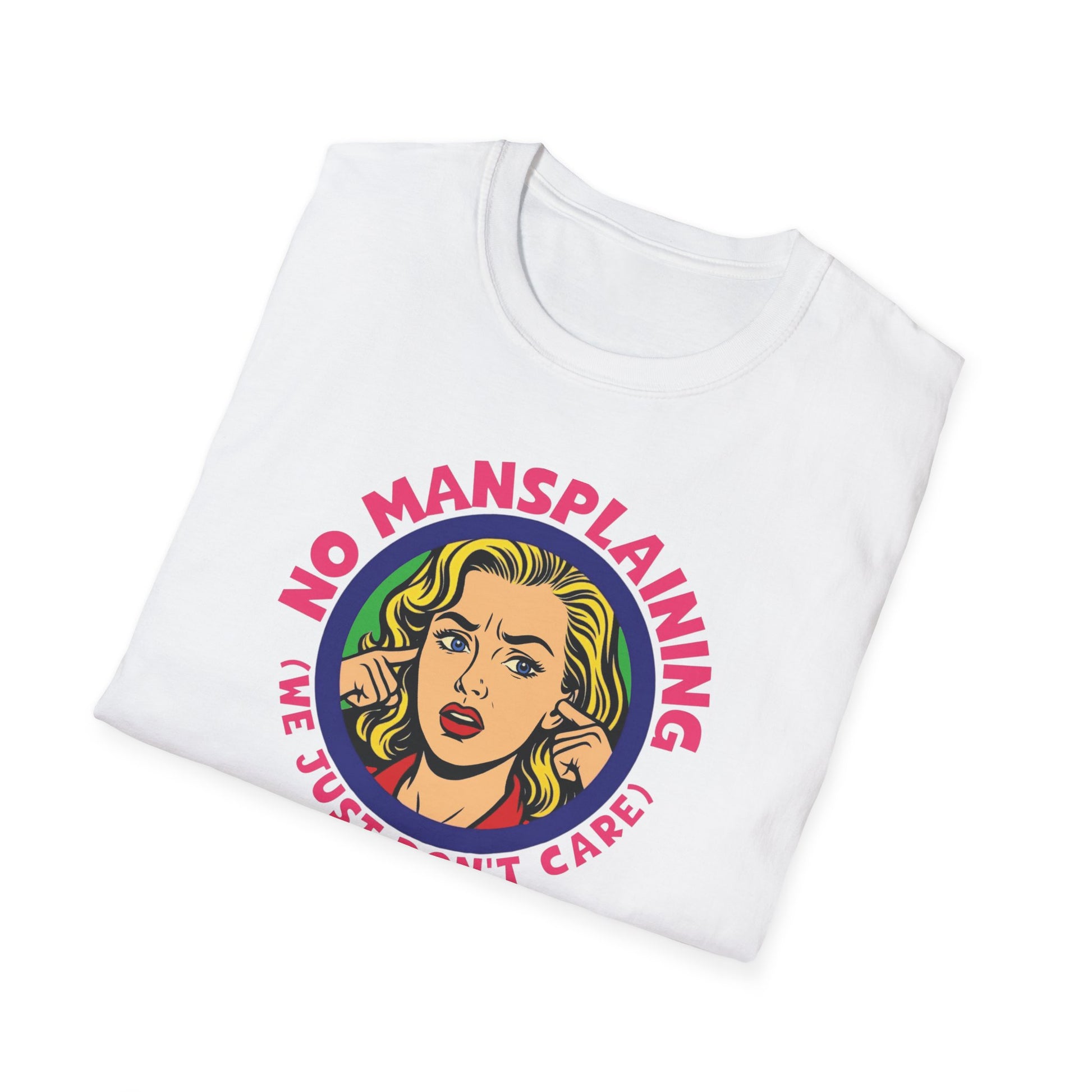 ired of being talked over, dismissed, or "well actually"-ed? This bold No Mansplaining T-Shirt is the ultimate feminist clapback you can wear on your chest. With a striking retro pop art design of a woman plugging her ears in frustration, this shirt makes it clear: we’re done listening, and we don’t care.