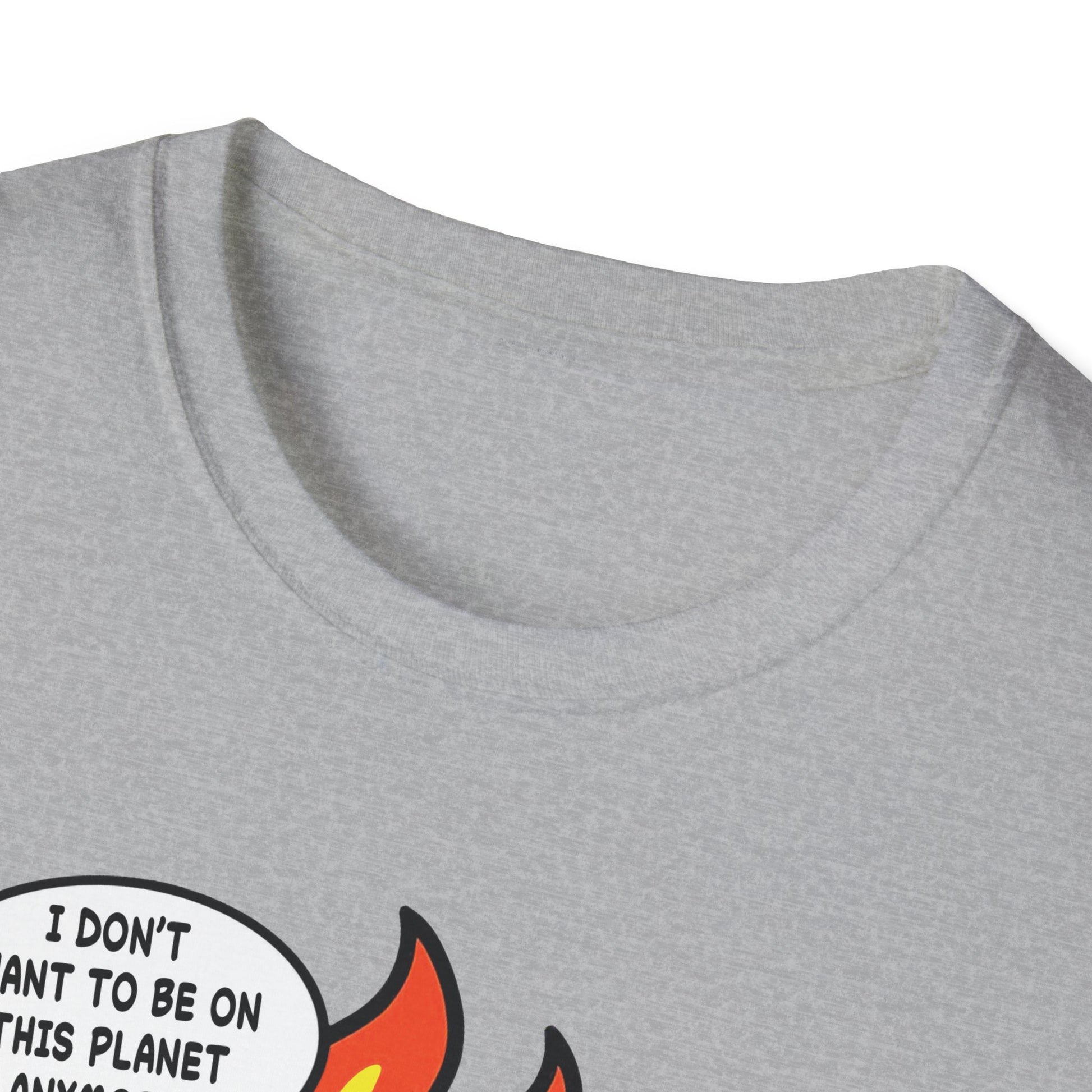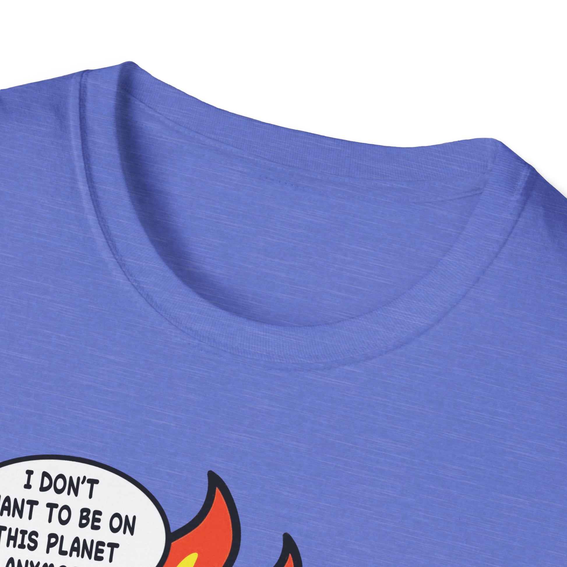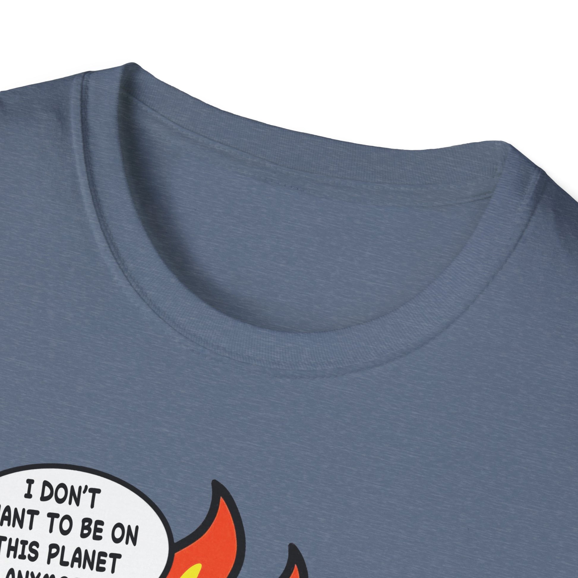 #IDontWantToBeOnThisPlanetAnymore #Retro80sTshirt #PopCultureTee #FunnyGraphicTee #ClimateChangeShirt #PoliticalTshirt #ActivistFashion #EnvironmentalTshirt #GenXStyle #RetroGraphicTee #BurningWorldShirt #ClimateCrisisFashion #ResistanceWear #Nostalgic80sTshirt #EcoActivistShirt #FeministAndProud #PoliticalStatementShirt #FunnyActivistTee #RetroPopArtShirt #OverwhelmedButCute #CurioMemento #RetroComicTee #ProtestClothing #SustainableStatementWear #CulturalSatireShirt #AntiEstablishmentFashion #DarkHumorTshirt #RetroInspiredTee #PopCultureParodyShirt #EcoFriendlyActivistFashion