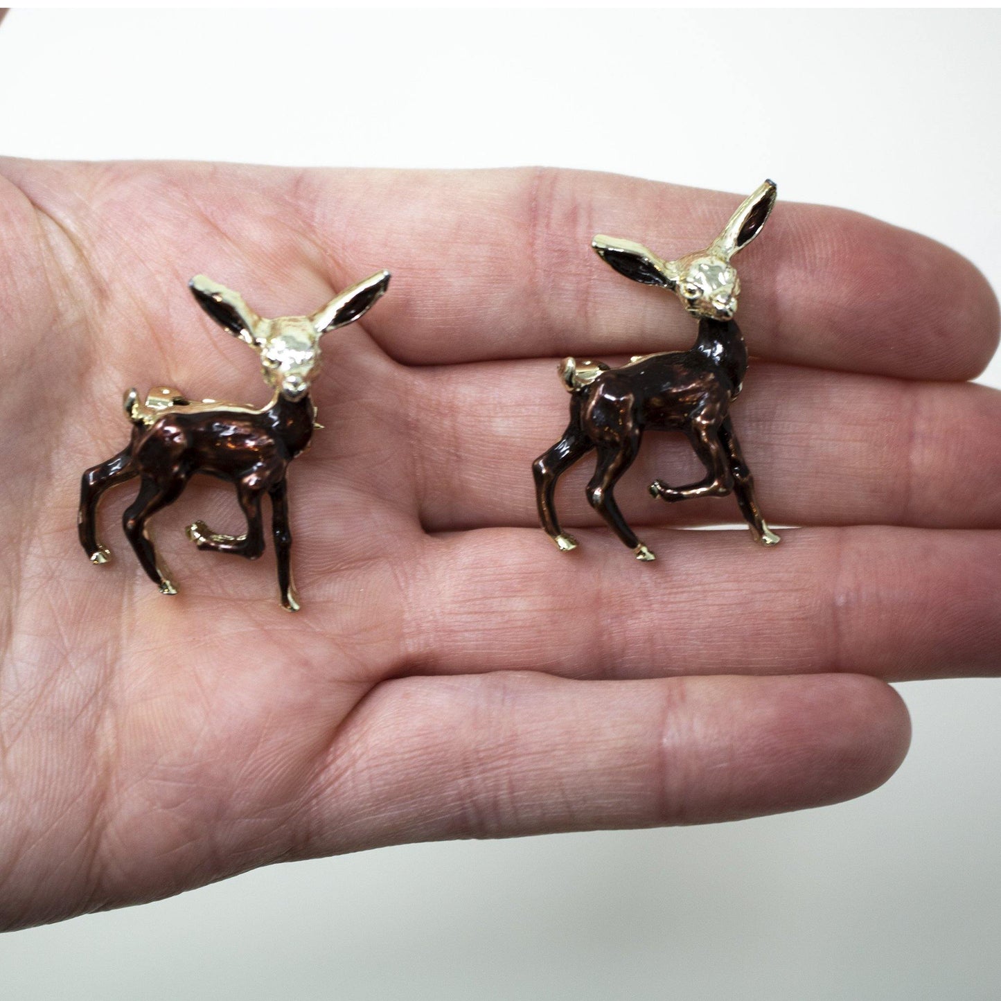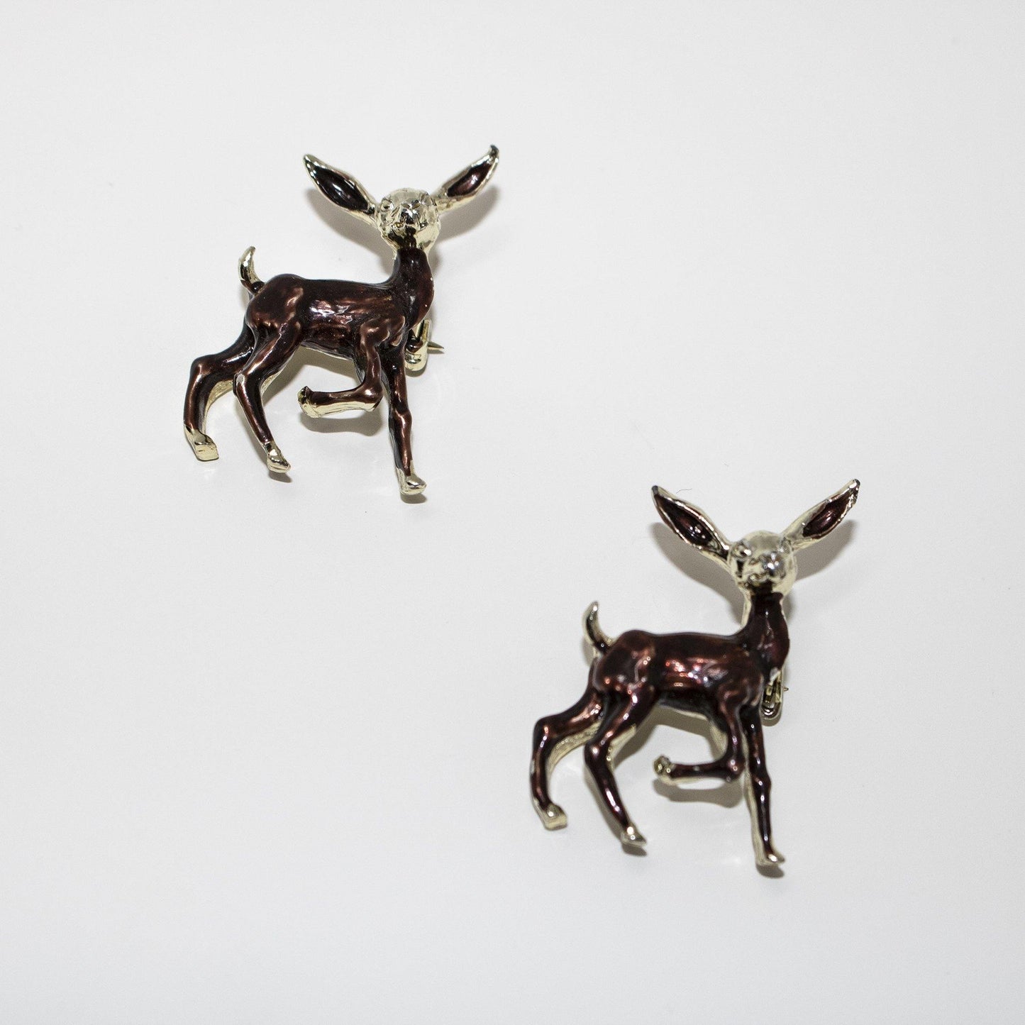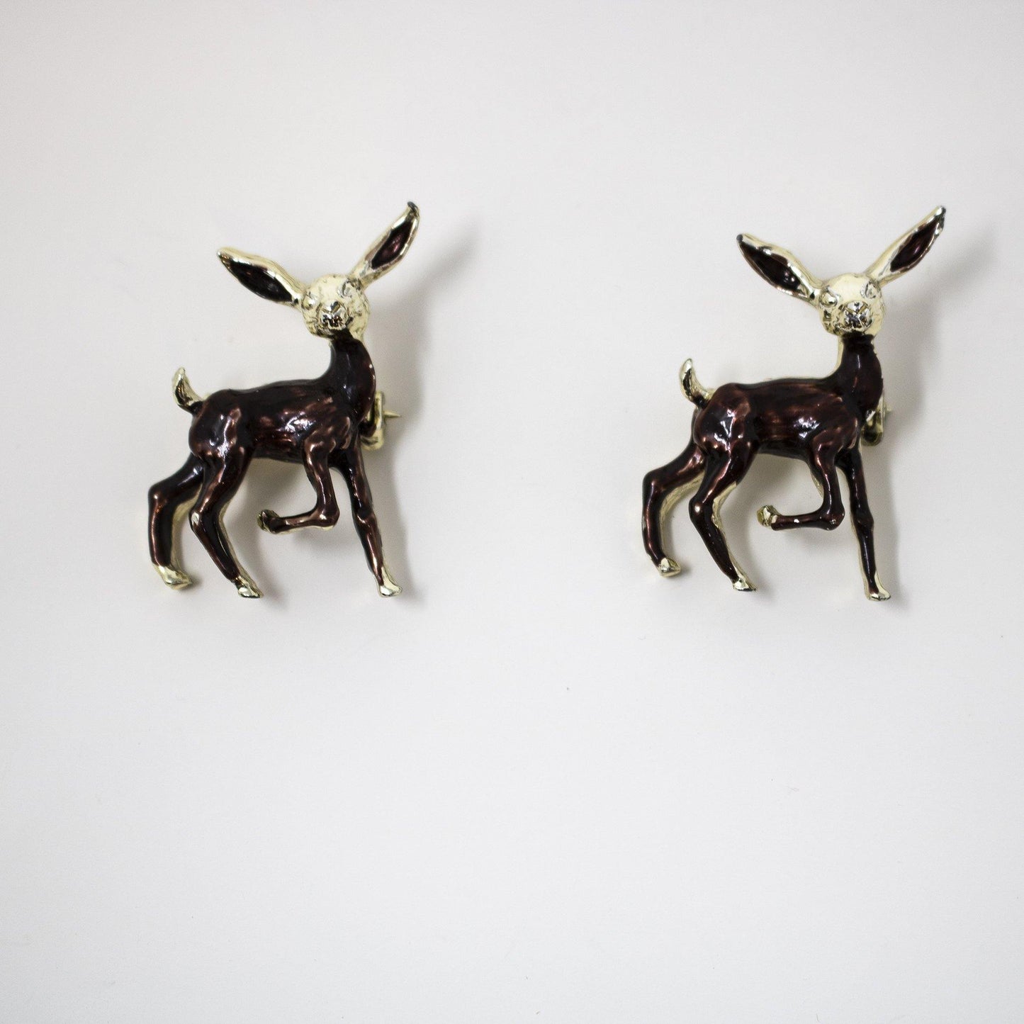 Set of Two Vintage 1960's era Gold Deer Brooches