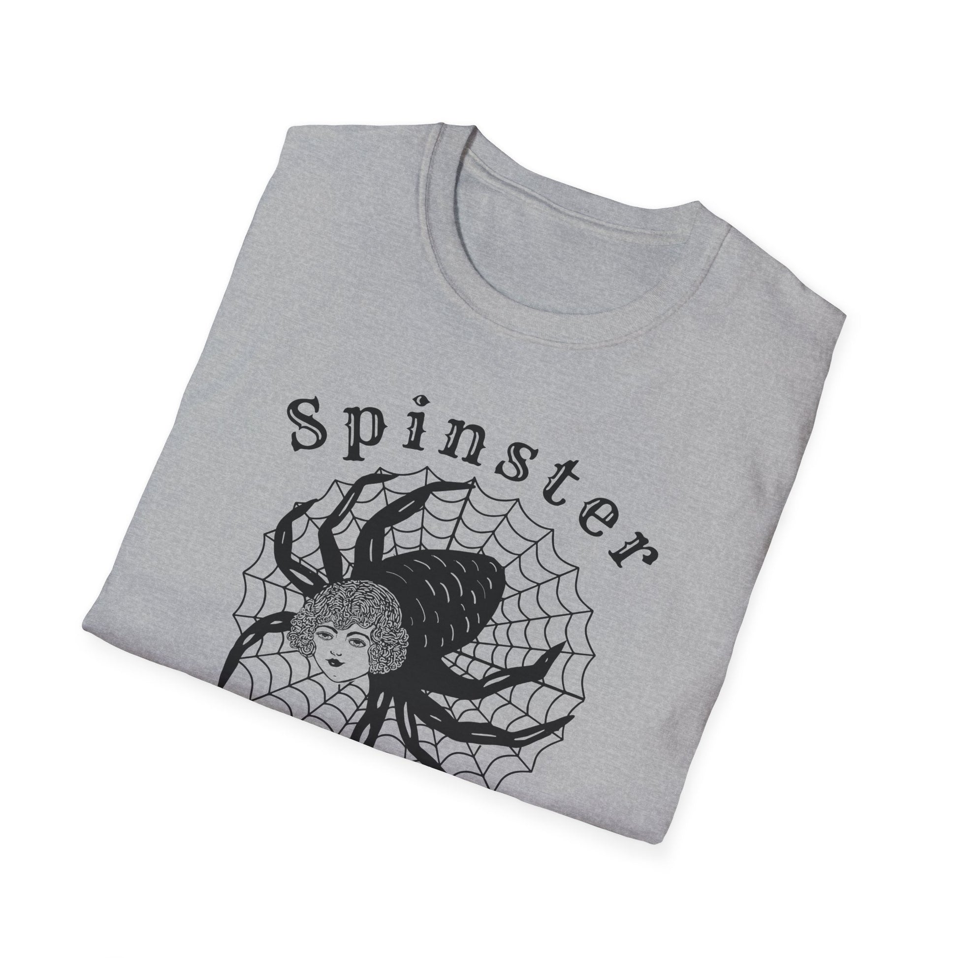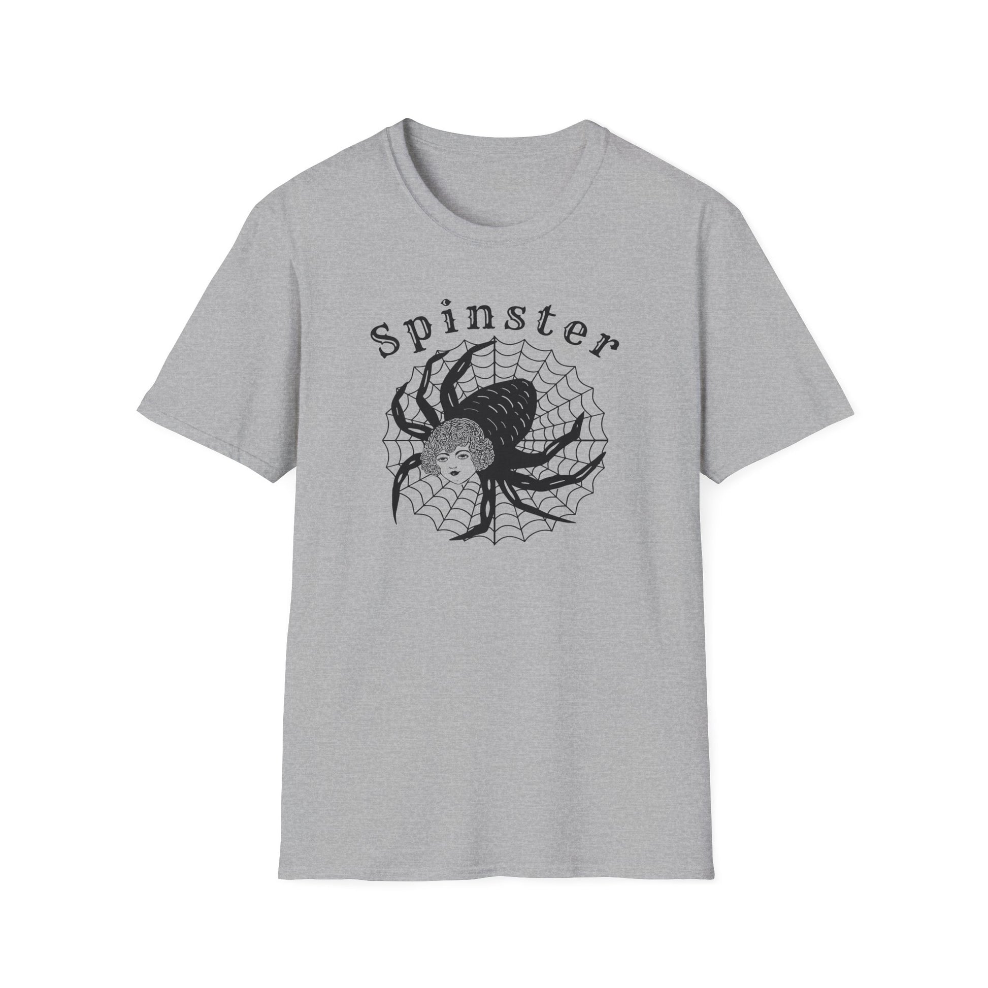 Celebrate independence, creativity, and a touch of dark humor with our "Spinster" T-Shirt, featuring a retro inspired illustratioin of a spider with a woman’s head perched in the center of her intricate web. The word "Spinster" boldly crowns the design, reclaiming and redefining the term to highlight the strength, creativity, and autonomy of women. Spiders are master weavers—both artistic and ruthless when needed—a perfect metaphor for the multifaceted nature of women navigating life on their own terms.