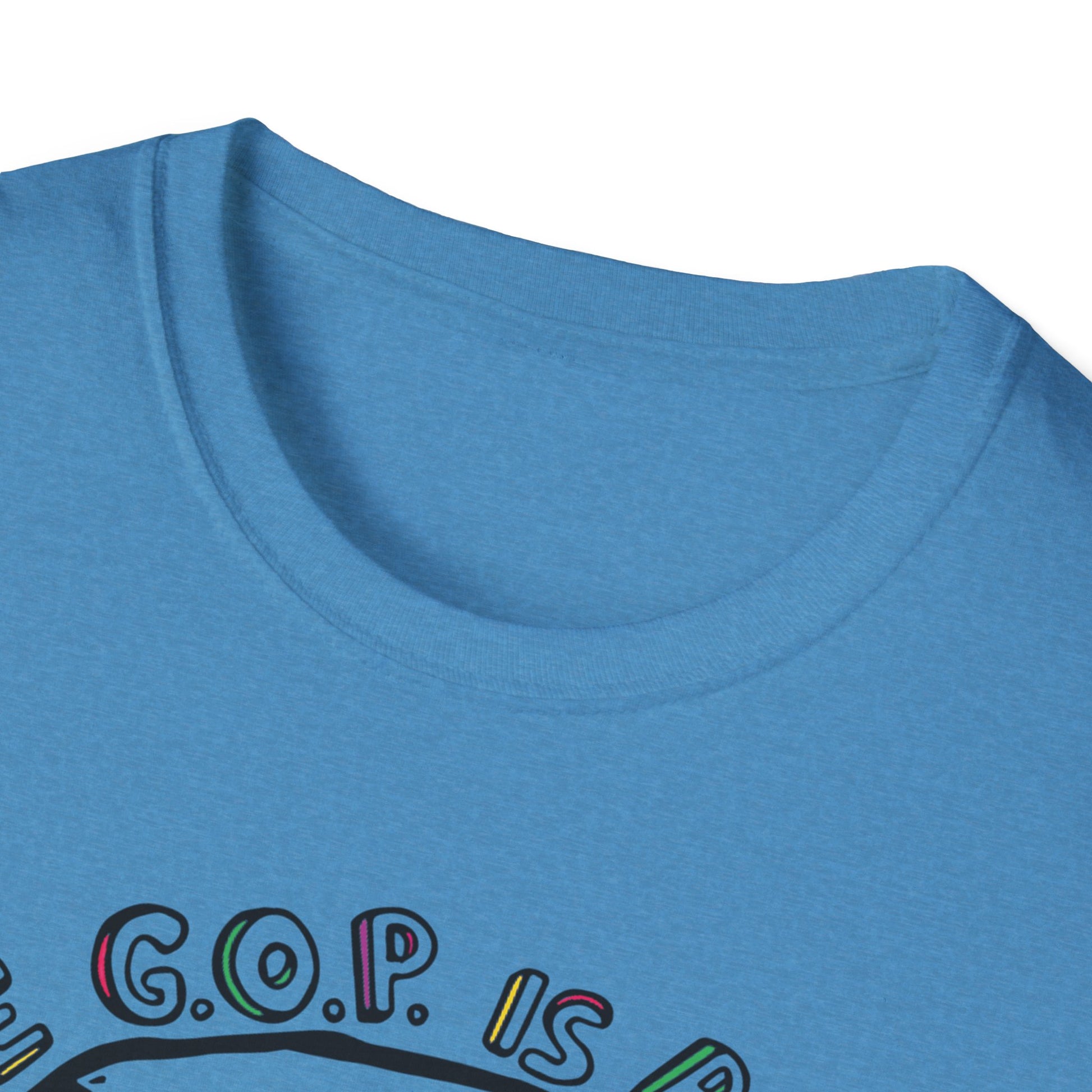 Unleash your sense of humor and ignite meaningful conversations with our bold, satirical Anti-GOP T-Shirt. This witty design delivers a clever jab at the political circus, blending humor and activism to create a statement piece that’s as eye-catching as it is thought-provoking. Whether you're rallying for progress, challenging the status quo, or simply adding a dash of humor to your wardrobe, this T-shirt is your go-to for sparking dialogue and making your voice heard.